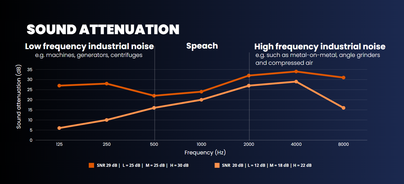 Dette gør det muligt for brugeren at kommunikere med kollegaer, høre alarmer og lignende, mens de arbejder i et støjende miljø.